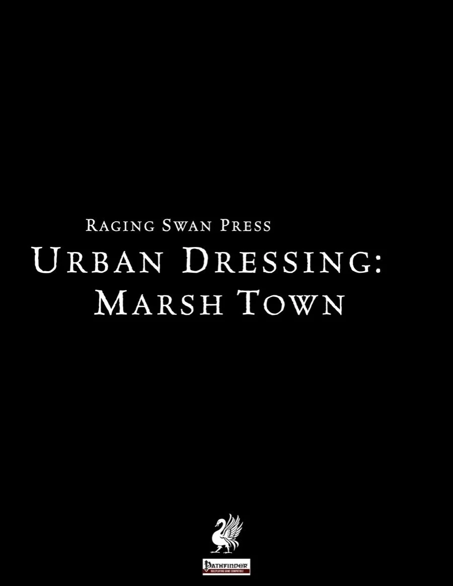 This is a short system-neutral extract from Urban Dressing: Marsh Town by Josh Vogt. Urban Dressing: Marsh Town is available from Raging Swan Press in 5e, Pathfinder First Edition, Pathfinder Second Edition and OSR editions.